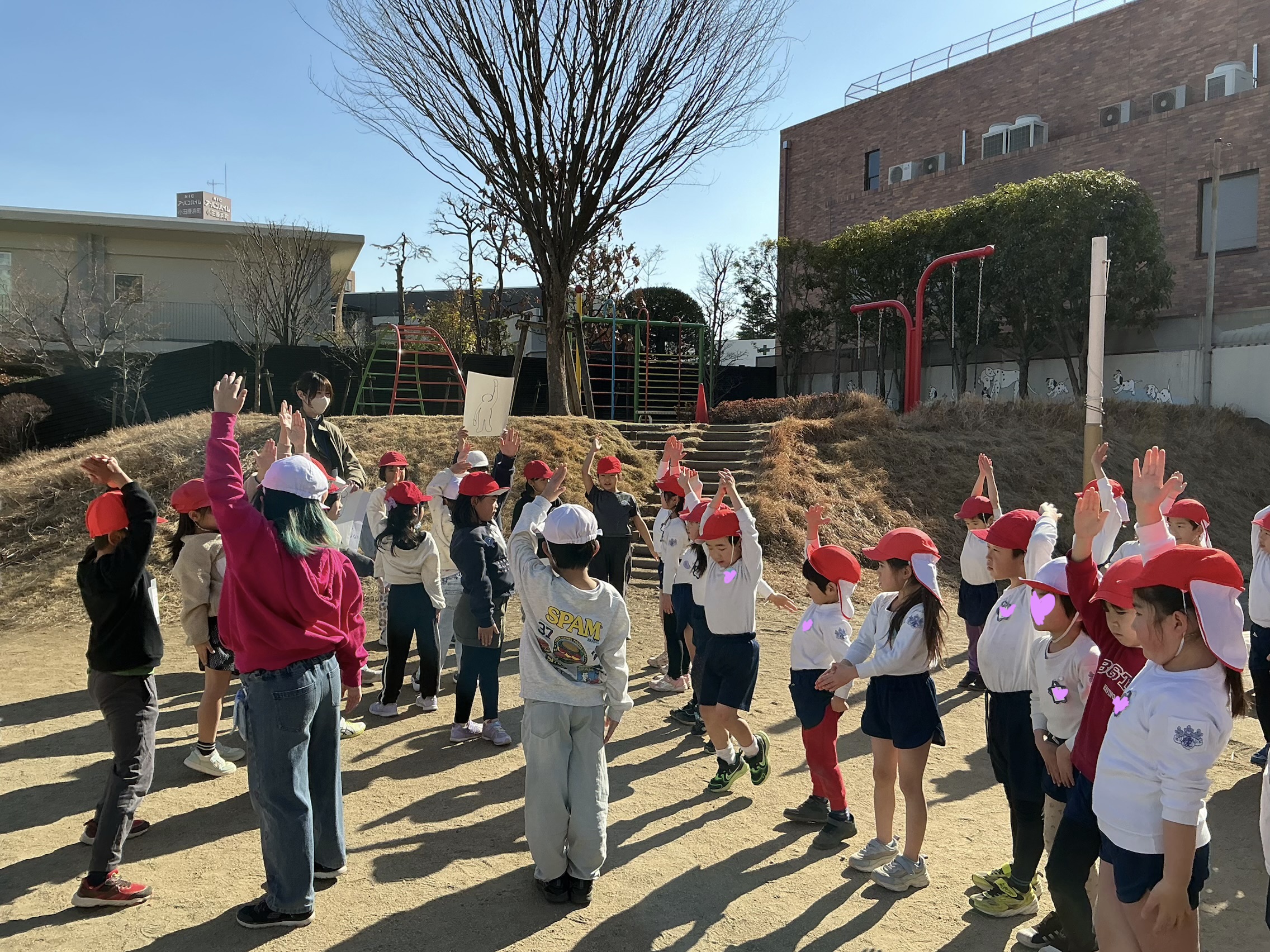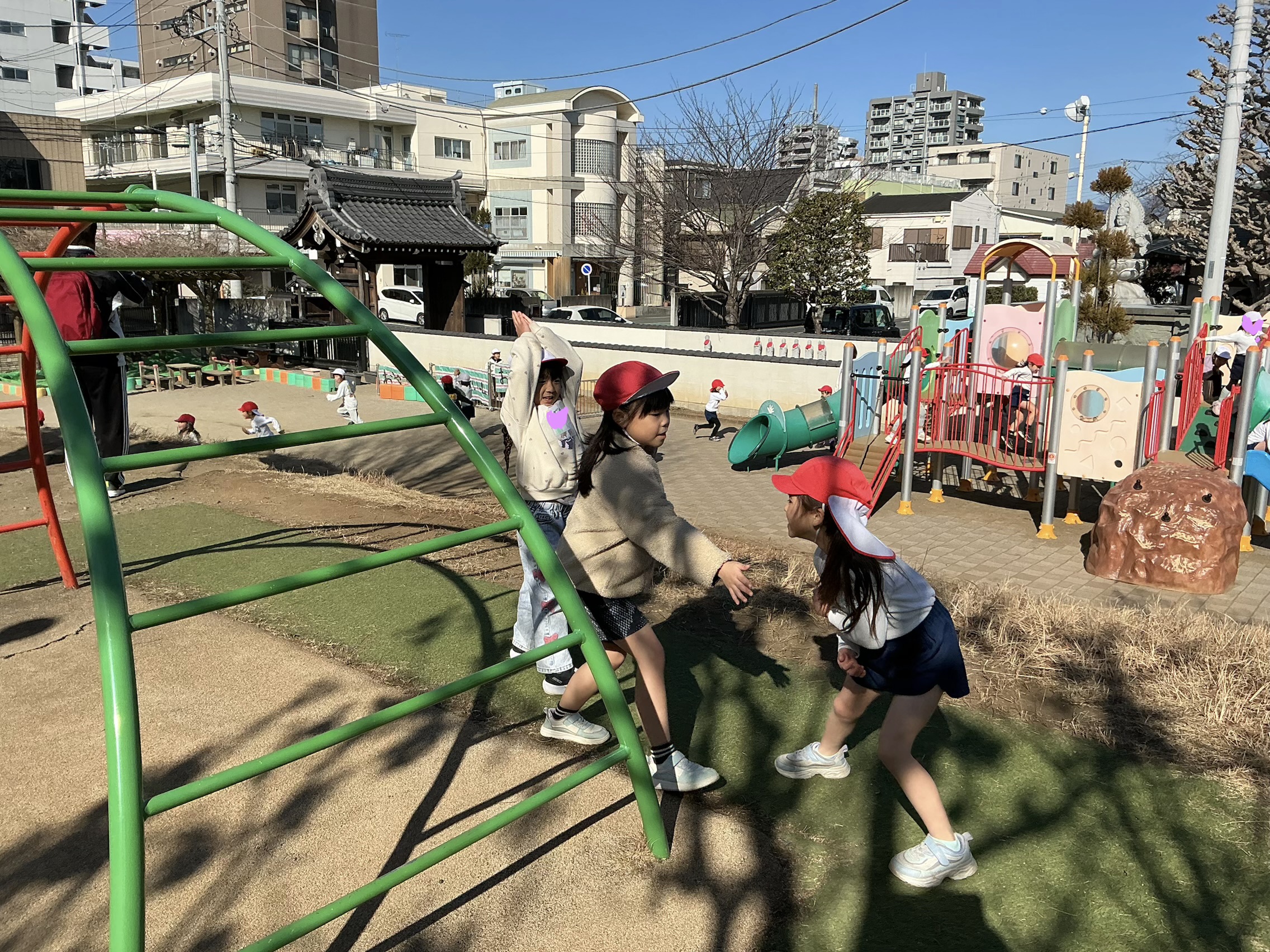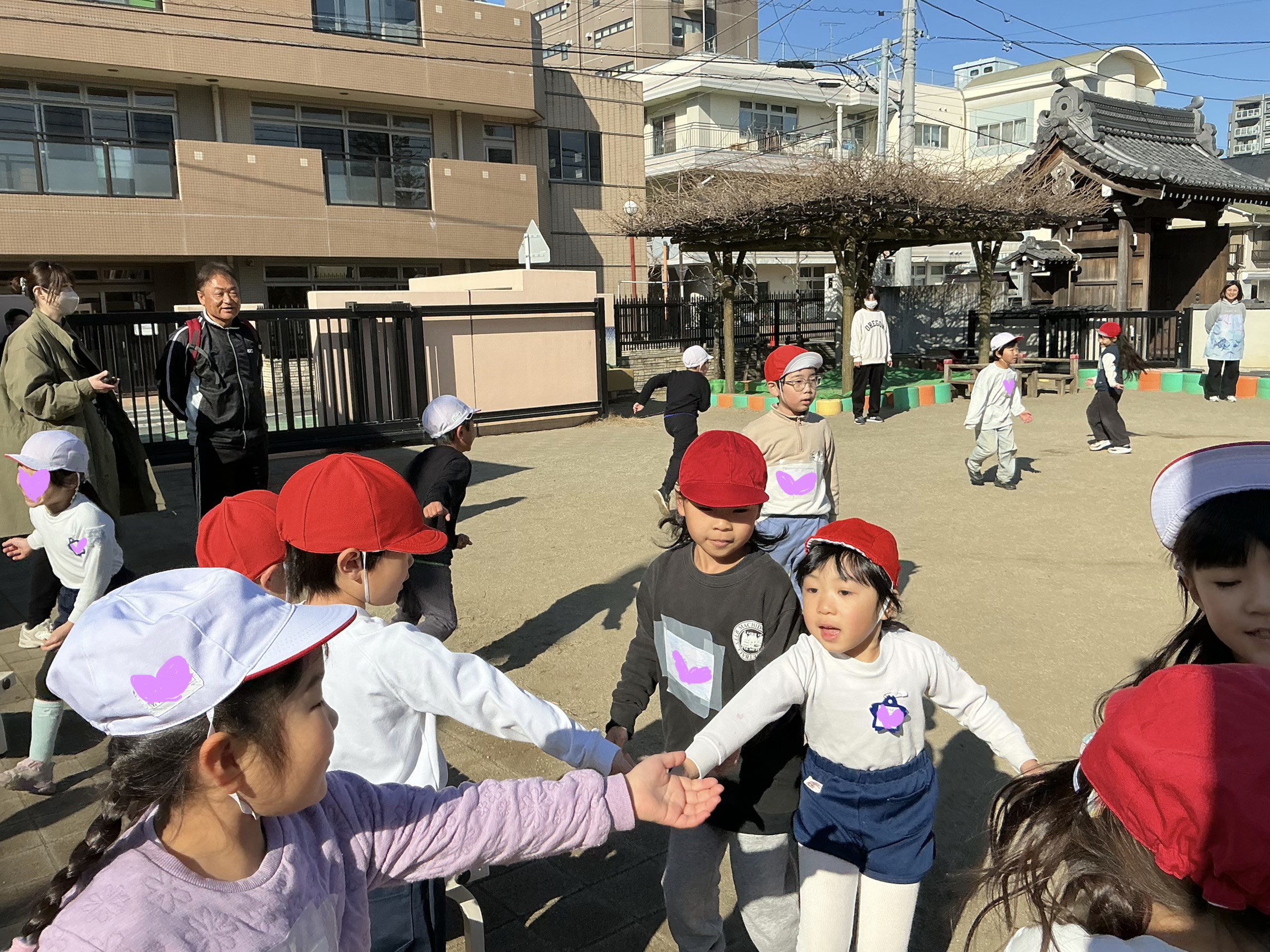 園庭で鬼ごっこをしたあとは