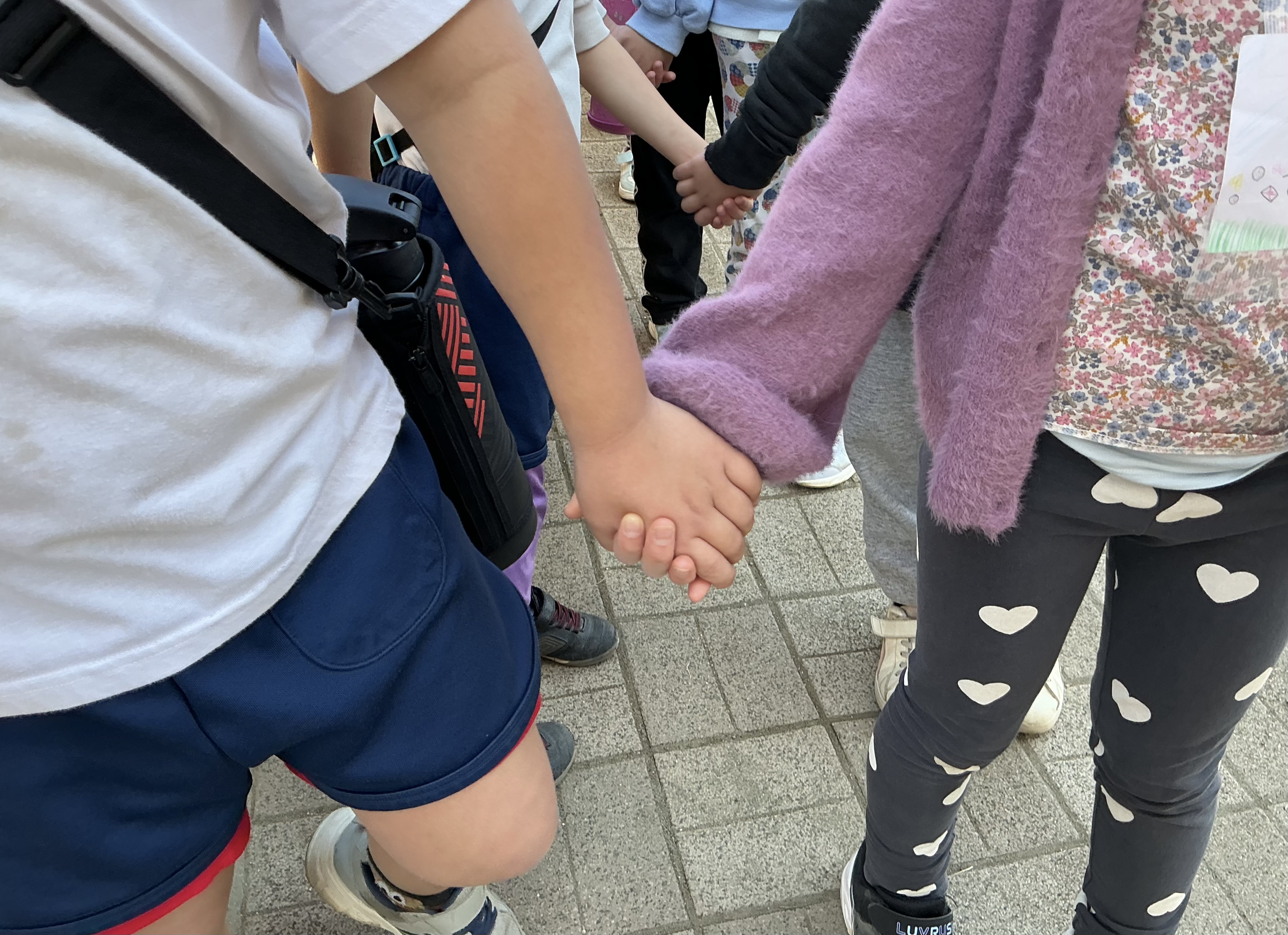 手を繋いで教室へ移動