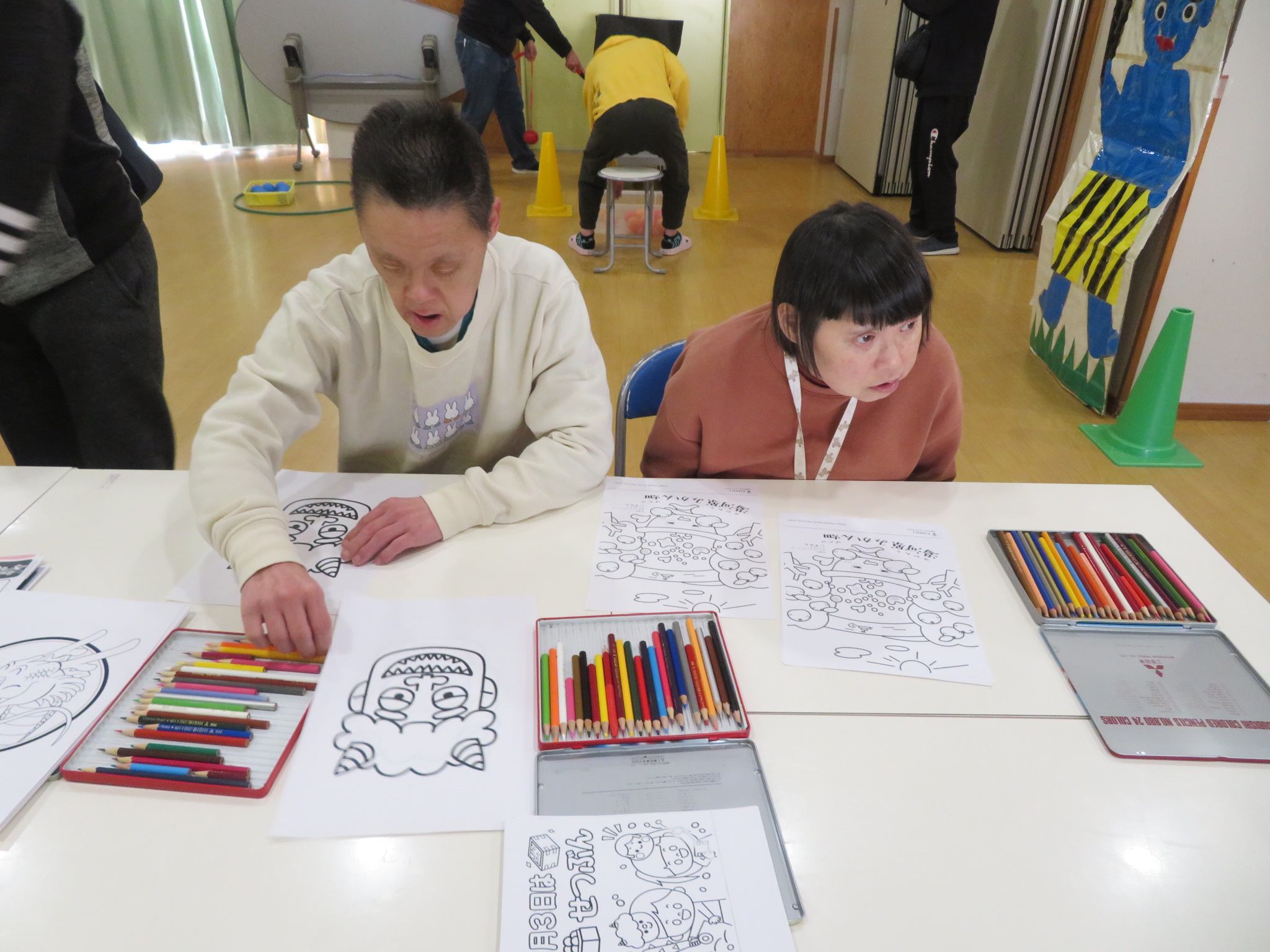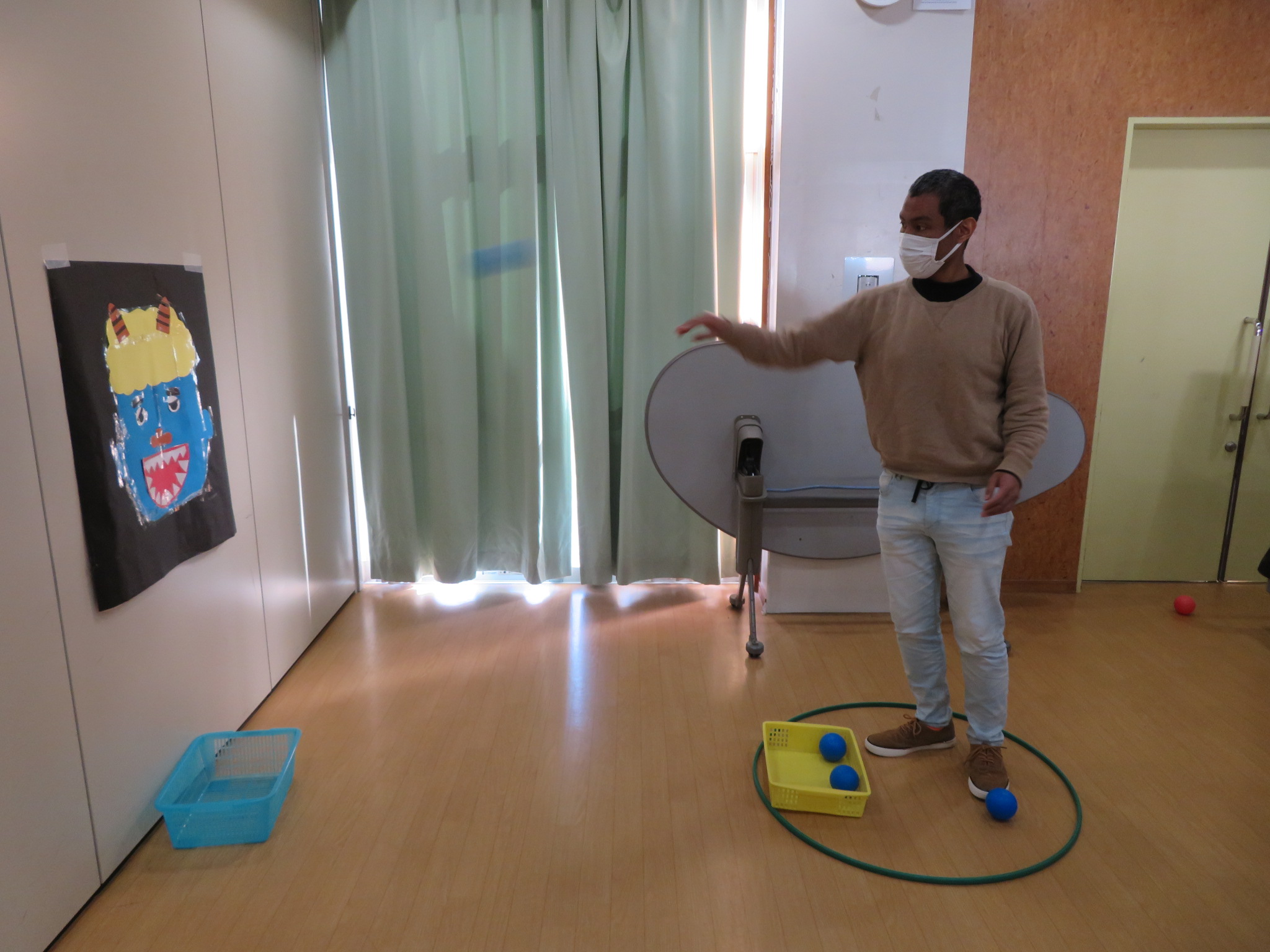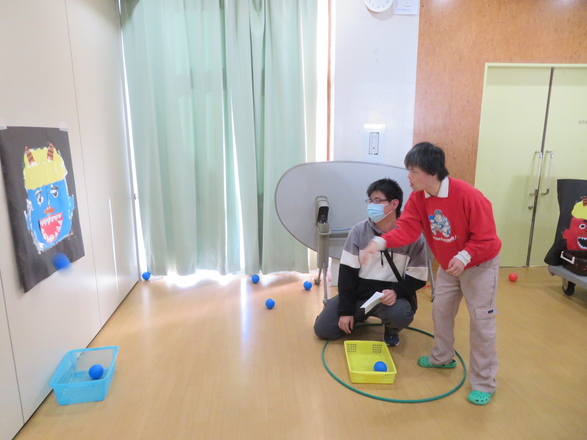 節分に関する絵を描いたり塗り絵をしたり豆まきと言う事で鬼の的当てをしました!