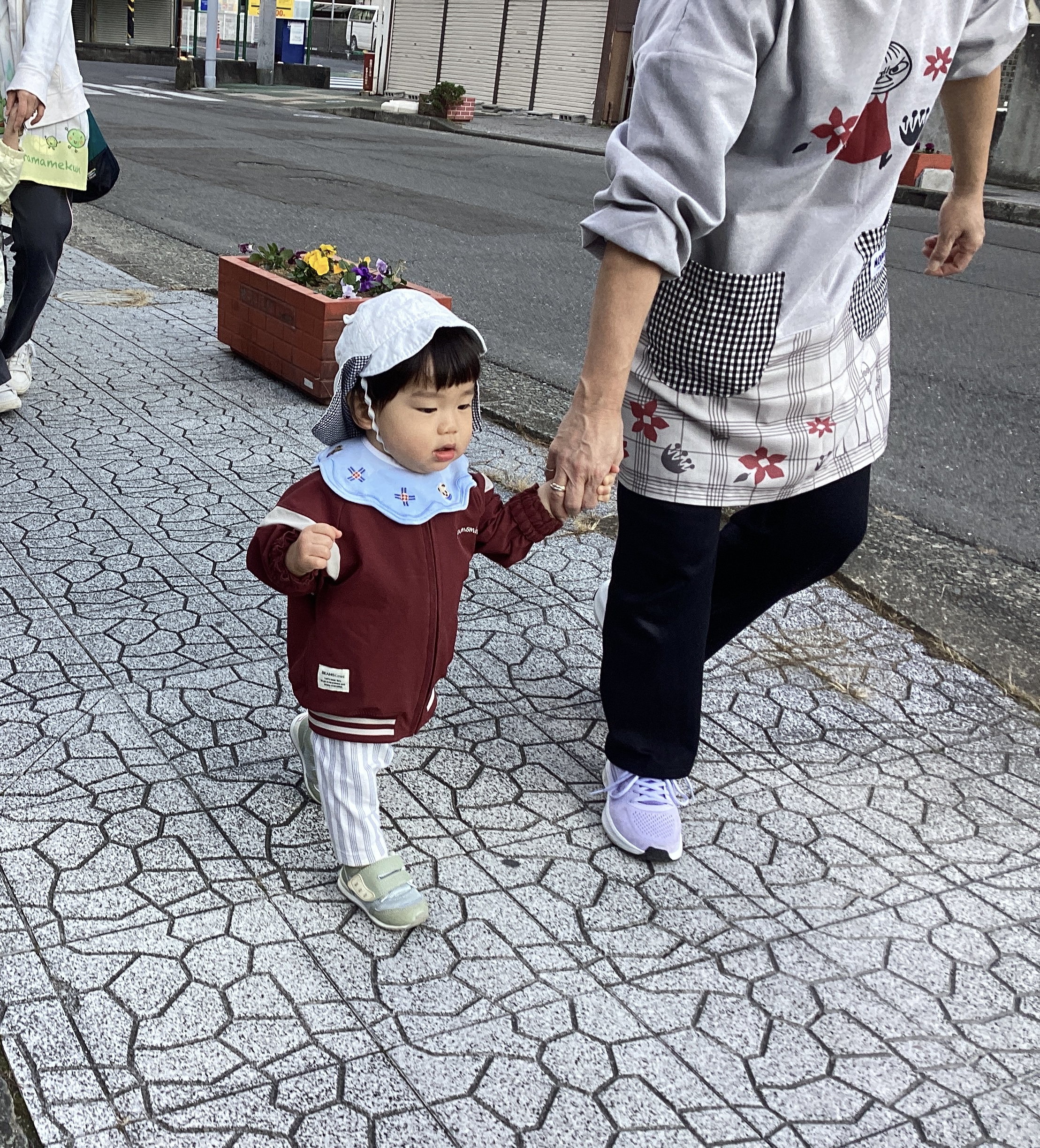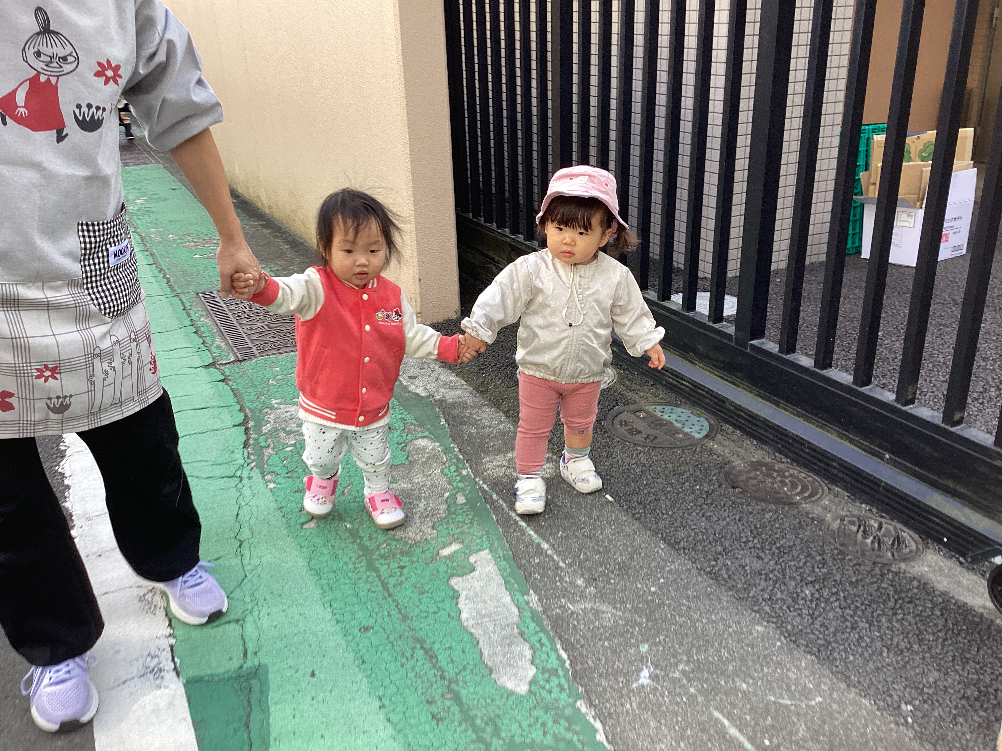 友だちや保育者と一緒に手を繋いで歩くことに楽しさを感じています!
