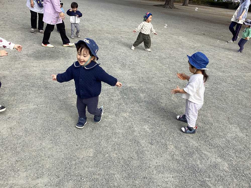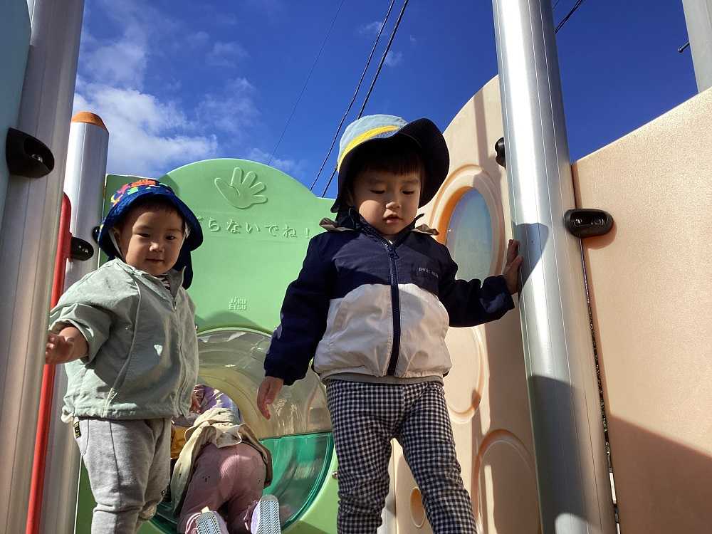 お日さまの光をたくさん浴びて楽しく遊んでいますよ。